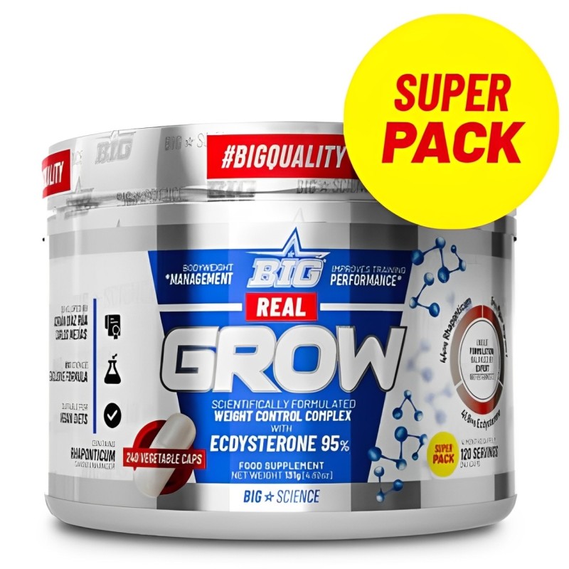 REAL GROW de BIGscience es una formulación de origen 100% natural única en el mercado actual basada en el famoso secreto ruso administrado a los principales atletas olímpicos rusos de finales del siglo XX. REAL GROW de BIGscience ayuda a tonificar el cuerpo, gracias a la acción del Rhaponticum.