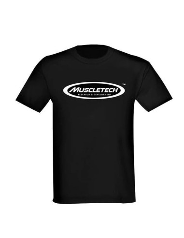Camiseta 100% algodón en tejido negro con serigrafía original de Muscletech.