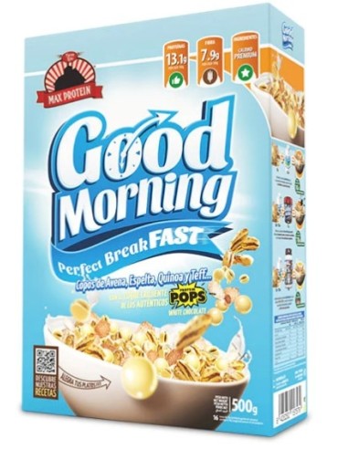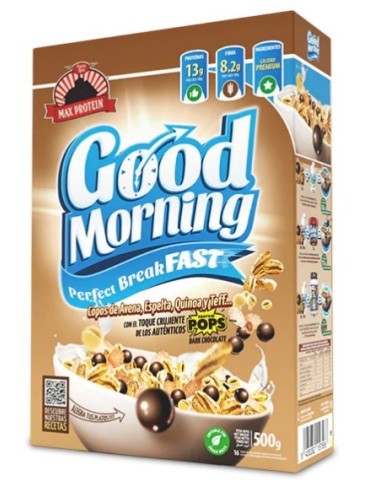 Disfruta de los nuevos cereales Good Morning Perfect Breakfast con su única combinación de 5 cereales de origen ecológico y nuestro exclusivo topping de ¡Protein POPS!, crujientes de proteína de suero cubiertos con una suave capa de chocolate desgrasado que aportan un delicioso toque extra dulce a tus desayunos y meriendas.