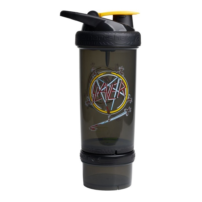Shaker mezclador con dos compartimentos apliables. Capacidad 750ml más almacenamiento de 100ml.