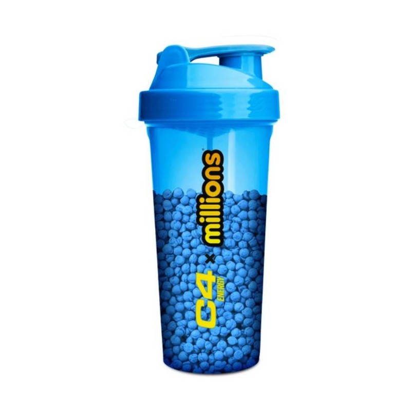 Mezclador Cellucor Millions C4 de edición limitada con marcas en ml y oz de hasta 800 ml para mezclar con mayor facilidad. El mezclador inteligente viene con una tapa de rosca segura, un asa de transporte en forma de bucle y un protector de pico abatible para evitar goteos y derrames.