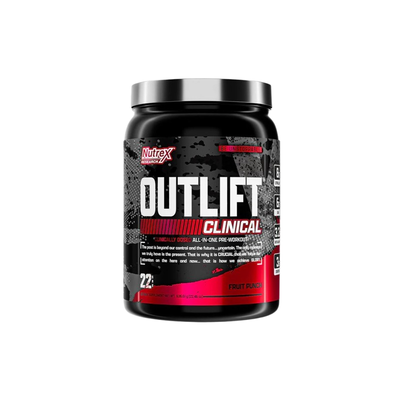 Notarás la diferencia inmediata en tus sesiones de entrenamiento con solo una cucharada de OUTLIFT CLINICAL, el suplemento pre-entrenamiento inigualable para un rendimiento máximo, energía desbordante, un bombeo descomunal y una fuerza sin límites.