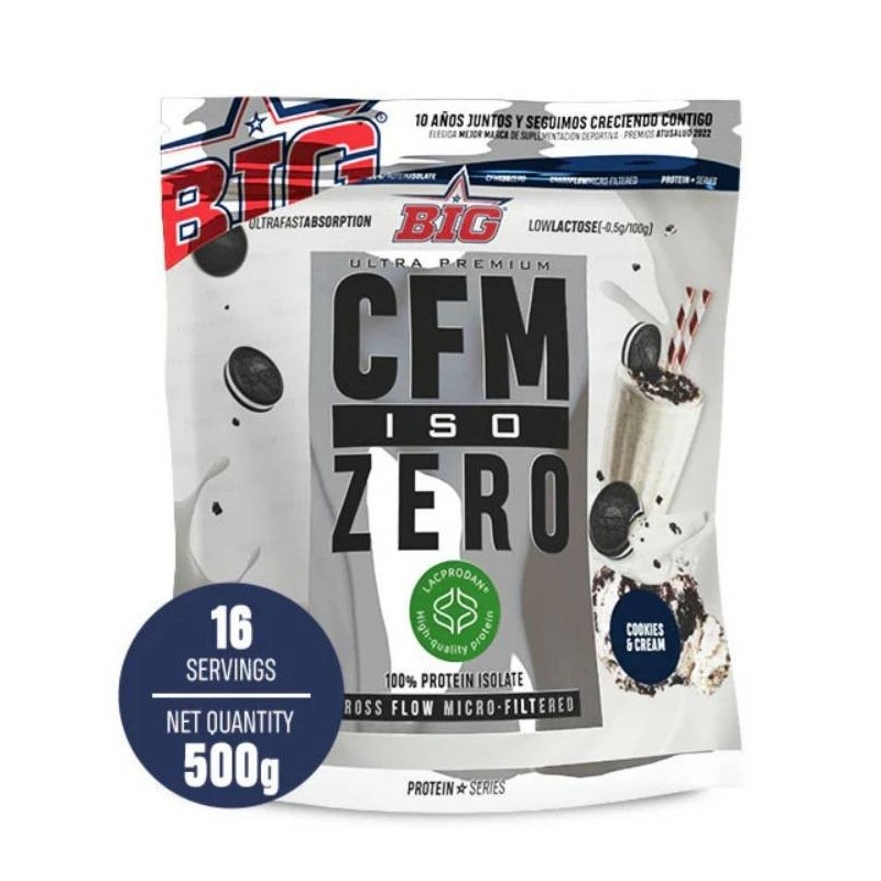 CFM ISO ZERO de BIG® elaborada exclusivamente con aislado de proteína de suero al 90%.