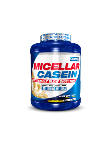 Micelar Casein de Quamtrax ofrece una altísimo porcentaje de Caseína Micelar Pura. 80% por 100gr. Una proteína de lenta absorción que evitará la degradación muscular durante el sueño.