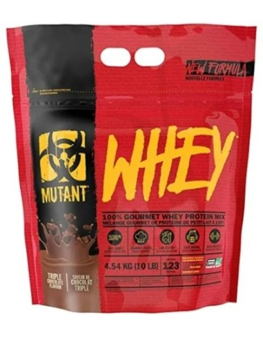 Ingredientes Mutant whey® extreme multi whey mega blend (nitroserum™ (complejo único de concentrado de proteína de suero de leche filtrada por membrana / complejo de fosfolípidos), concentrado de proteína de suero de leche microfiltrado, aislado de proteína de suero de leche (procesado en frío), Actinos® (proteína de suero de leche hidrolizada (con aislado de péptidos bio-ativos)), aislado de proteína de suero de leche hidrolizada), cacao, complejo de dispersion controlada (inulina, goma xantana, avena, soja), Amino blend (péptidos de glutamina (de proteína de trigo hidrolizada), taurina, glicina, leucina), sabores naturales y artificiales, citrato de potasio, carboximetilcelulosa, cloruro de sodio, acesulfamo potásico, sucralosa, lecitina de soja.