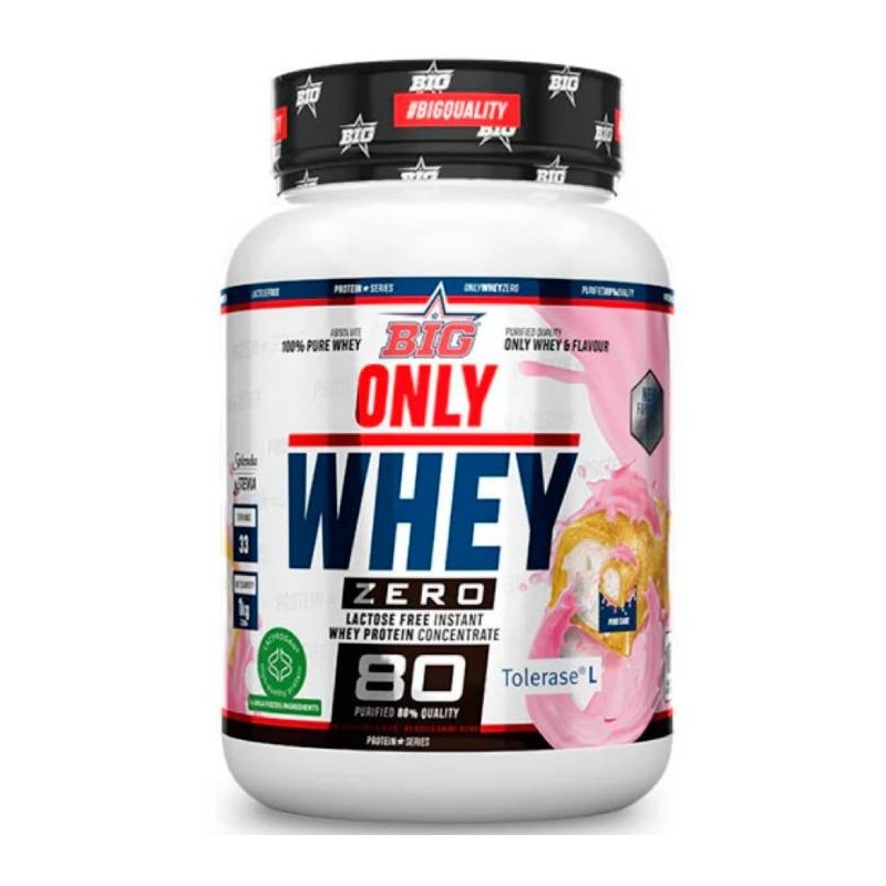 Only Whey Zero 1KG (Big). La nueva proteína de concentrado de suero sin lactosa de BIG®, elaborada con Lacprodan® SP-8011V Instant, uno de los mejores y más novedosos concentrados de suero del mercado, y con la patente Tolerase L-Lactasa®, una formulación con enzimas de lactasa que mejora significativamente la digestión de la lactosa contenida en el suero. Sin duda, un valor añadido que marca una diferencia para la mayoría de consumidores que busca una proteína en polvo de la más alta calidad.