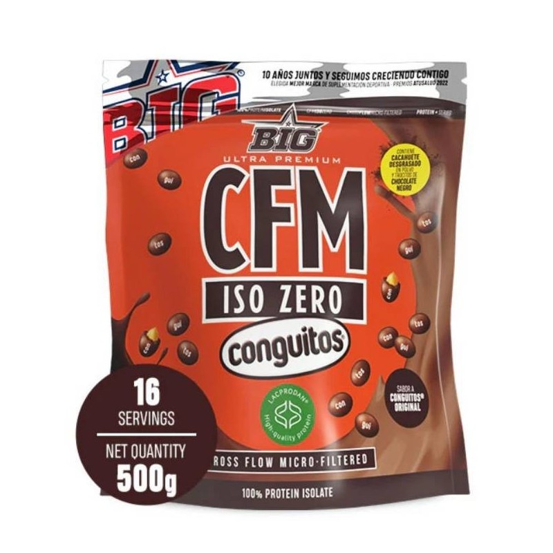 Descubre la nueva proteína CFM ISO ZERO CONGUITOS® fruto de una nueva colaboración de BIG® y LACASA®. Disfruta ya del genuíno sabor que te acompañó durante toda tu infancia ¡con polvo de cacahuete desgrasado y trozos de chocolate!, ahora disponible por tiempo limitado en la mejor proteína del mercado en su sabor ORIGINAL y en versión WHITE, con la calidad y seguridad que ofrece el mejor aislado de suero Lacprodan® SP-9225 Instant de Arla® Foods Ingredients.