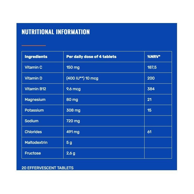 Además, las propiedades de este producto lo hacen eficaz incluso para afrontar el día a día asegurando un aporte de energía y favoreciendo la hidratación del cuerpo con tan solo tomar un comprimido al día.
