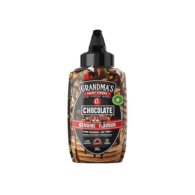 Dicen que el chocolate es afrodisíaco y que libera la hormona de la felicidad. Pero los verdaderos adictos al chocolate sabemos que lo más importante es su sabor. Por eso hemos creado el Grandma´s Chocolate Syrup con el sabor potente al chocolate de siempre, pero con ingredientes saludables. Tiene todo lo necesario para disfrutar de un buen postre: es bajo en calorías, con cero grasas de mala calidad y sin azúcares añadidos.