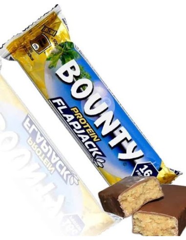 Bounty FlapJack es un barrita a base de harina de avena y proteínas lácteas con sabor a la típica barrita americana y muy baja en azúcar.