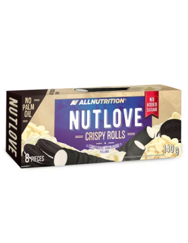 NUTLOVE CRISPY ROLLS WHITE CHOCOLATE son deliciosos waffles tubulares con un delicado relleno con sabor a chocolate blanco.
